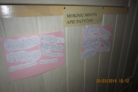6-10 klasių mokiniai pamokų metu užrašė savo mintis, kaip jie supranta patyčias, kaip jų išvengti.