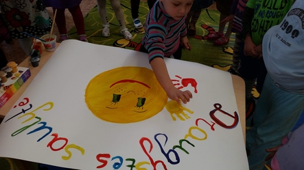Mūsų delniukai, kaip draugiški saulės spinduliukai.