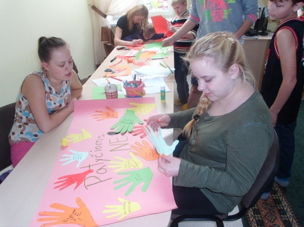 Vaikai kūrė stendą. „ Vaikų globos namai be patyčių“