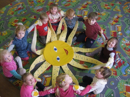 Ikimokyklinio ugdymo grupėje „Kiškučiai“ vyko pokalbis apie draugiškumą, kaip gera turėti draugą, kaip mes suprantam draugystę, kaip svarbu užjausti draugą bėdoje, paduoti jam ranką, dalintis žaislais. Nusprendėm, kad mes esame labai draugiški ir saulutė mums nusišypsojo.