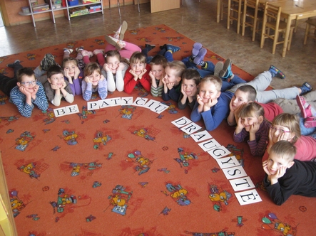 Priešmokyklinukai dėliojo žodžius, skaitė, diskutavo...Žodžius, kurie yra labai svarbūs..