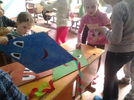 Mokiniai kirpo, aplikavo aitvarus, juose surašė savo komplimentus, ir mokėsi juos pasakyti draugui.