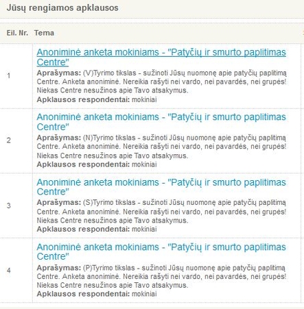 Socialinės pedagogės vykdė tyrimą "Patyčių ir smurto paplitimo Centre įvertinimas“. Tyrimo metu atsiskleidė, kad dauguma Centro mokinių vis dėlto pripažįsta, jog Centre patyčios egzistuoja. Tačiau reikia pasidžiaugti – didžioji dalis apklaustųjų teigė, kad jų niekas nepriverstų prisidėti prie skriaudėjų.