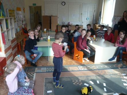 "Gudručių" grupės vaikai, būsimieji pirmokai susitiko su Verdenės progimnazijos šeštokais. Kalbėjome apie mokyklą, kartu auginome Draugystės medį iš savo rankyčių. Šeštokai užrašė vaikučiams padrąsinančius žodžius.