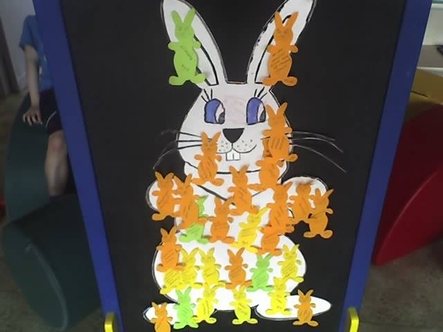 Vaikų mintys, šilti, gražūs ir malonūs žodžiai bei palinkėjimai sukabinami ant nupieštų spalvingo Zuikučio silueto (,,Zuikučių“ grupės simbolis).
