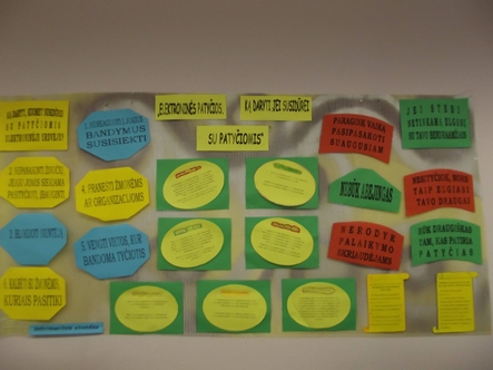 Integruotų lietuvių kalbos ir informacinių tecnologijų pamokų metu lietuvių k. mokytojos E. Lipnevičienės ir informacinių technologijų mokytojos L. Barsukovos padedami mokiniai parengė stendą apie patyčias vykstančias elektroninėje erdvėje.