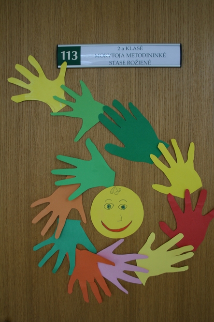 Antroji akcijos dalis - "Išreikškime pagarbą spalvotai". 5-8 klasių mokiniai darė delnų antspaudus, kuriuos kabino ant savo klasių durų.
