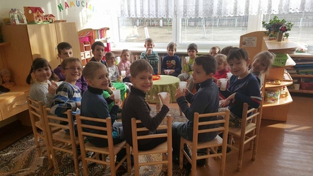 Priešmokyklinio amžiaus grupių vaikai aplankė mažesnius darželio vaikus, kartu gėrė arbatą, žaidė žaidimus ir kalbėjosi su kitos grupės vaikais apie draugus, draugystę, patyčias bei ką daryti jei iš tavęs tyčiojasi. Vyresnieji vaikai kitos grupės vaikams padovanojo savo kūrybos "Stop patyčioms!" rankutes ir pasakojo, kaip jomis naudotis pamačius patyčių atvejį grupėje.