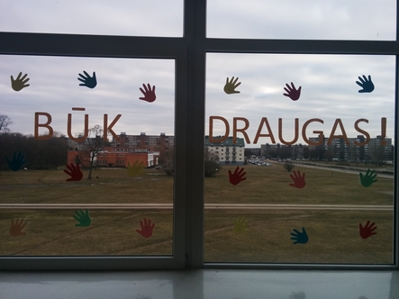 Pirmadienį kartu su mokiniais puošėme mokyklą pačių mokinių karpytomis rankytėmis.