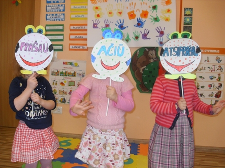 Kartu su vaikais kuriame pasaką "Prašau - ačiū - atsiprašau"