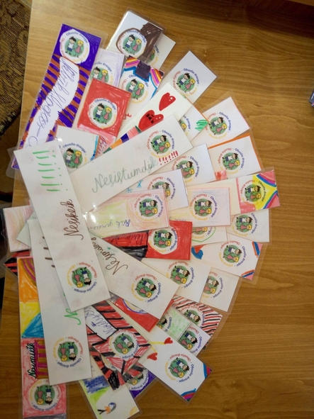 Mokiniai dėvėjo marškinėlius su įvairiais užrašais.