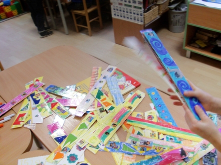 Grupėje "Ežiukai" vaikai kuris knygų skirtukus, kalbasi kam ir kodėl juos dovanos.