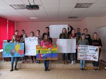 Paskutinė "Savaitės be patyčių 2016" veikla - plakatų, skirtų patyčių prevencijai piešimas ir pristatymas bei "Draugystės knygos" skaitymas.