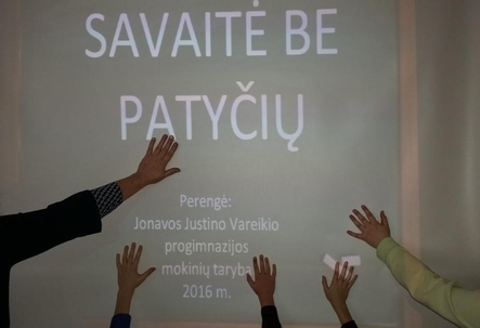 Jonavos Justino Vareikio 5-8 klasių mokiniai savanoriai vedė integruotus užsiėmimus 1-4 klasių mokiniams patyčių tema.