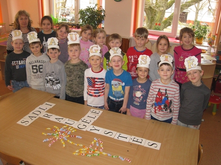 Panevėžio lopšelio-darželio "Kastytis" "Drugelių" grupės ugdytiniai sprendė pedagogės parengtą kryžiažodį ir pagal jį sudėjo "Saldžią draugystės gėlę".