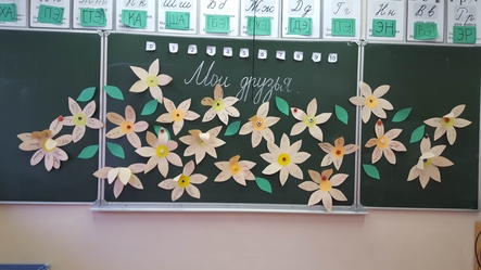 Mažiausi mokyklos ugdytiniai pasipuošė savo klases draugystės pievelėmis.
