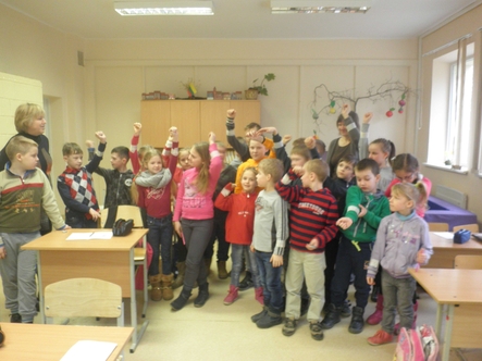 Mokiniai rašė komplimentą draugui ant popierinės apyrankės.