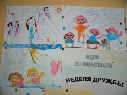 Kovo 14-18 dienomis, veiksmo savaitėje "Be patyčių" kūrėme tęstinę "Draugystės knygą". tai jau III-ia knygos dalis, o kiekviena diena turėjo savo draugystės spalvą. Vaikai savarankiškai aplikavo ir piešė, kaip jie draugauja, vaizdavo savo grupės draugus, komentavo kad jie linksmai gyvena darželyje ir visi yra draugiški. Žaidžiant žaidimą "Ieškau sau draugo", gimė istorija, kaip vienas berniukas nenorėjo draugauti. Nenorėjo kartu su visais grupės vaikais žaisti ir todėl visada buvo vienas, tačiau visų kitų vaikų gerumas, tolerancija ir draugystė laimėjo prieš neigiamą berniuko nuotaiką, kuri neleido jam būti kartu su visais. Vaikai kalbėdamiesi, priimdami kitaip mąstantį, padėjo ,pamokė kaip drauge žaisti, gyventi ir padėti vieni kitiems.