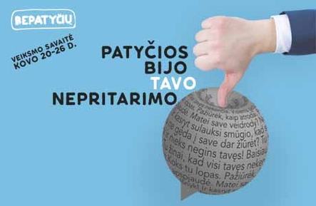 Kovo 20-26 dienomis visoje Lietuvoje jau aštuntą kartą vyks „Veiksmo savaitė BE PATYČIŲ“, kurią organizuoja emocinės paramos tarnyba „Vaikų linija“. Daugiau nei tūkstantis Lietuvos ugdymo įstaigų, kelios dešimtys partnerių ir palaikančių organizacijų, pilietiškų žmonių savo veiklomis sutelks visuomenės dėmesį į patyčių problemą, dalinsis efektyviomis patyčių prevencijos patirtimis ir skatins kiekvieną prisidėti, kad mūsų visuomenėje mažėtų patyčių ir dėl jų kenčiančių žmonių.
