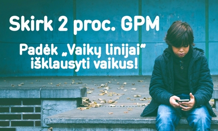 Kasmet „Vaikų linija“ atsiliepia į daugiau nei 160 tūkstančių vaikų ir paauglių skambučių, teikia emocinę paramą laiškais ir pokalbiais internetu. Patyčios išlieka vienas dažniausiai vaikų minimų sunkumų, dėl kurio jie kreipiasi į „Vaikų liniją“. Jūs galite prisidėti, kad visi vaikai, norintys pasidalinti savo išgyvenimais, galėtų pasiekti „Vaikų linijos“ pagalbą. Kviečiame palaikyti mūsų veiklą ir paskirti „Vaikų linijai“ 1 ar 2 proc. gyventojų pajamų mokesčio (GPM)!