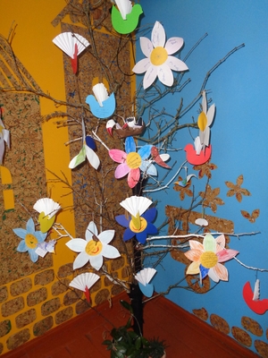 Auginome "Gėrio medį". (1-4 klasių mokiniai kabino ant medelio savo pagamintus gerumo atvirukus su gražiausiais, šilčiausiais norais, palinkėjimais draugams).