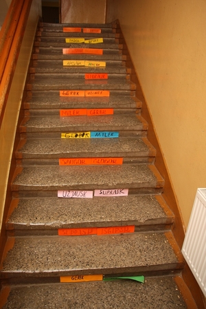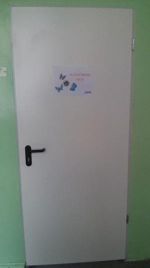 Durys, papuoštos plakatu. Šia plakatas kabojo ant visų mokyklos kabinetų durų visą veiksmo savaitę.