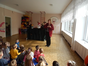 Priešmokyklinio ugdymo grupė "Rūtelė" ugdytiniai parodė lėlių teatro vaidinimą draugystės, bendravimo tema.