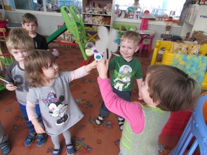 Panevėžio lopšelio-darželio "Kastytis" "Drugelių" grupės ugdytiniai sprendė pedagogės parengtą kryžiažodį ir pagal jį sudėjo "Saldžią draugystės gėlę".