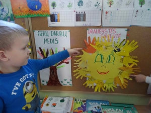 "Drugelių" priešmokyklinio ugdymo grupės ugdytiniai lankėsi bibliotekoje. Vaikai klausėsi skaitomos pasakos apie draugystę. Aptarė knygos veikėjų poelgius, kaip jie stengėsi vienas kitam padėti. Bibliotekoje vaikai rišo "Draugystės apyrankes", kiekvienas pagalvojo apie geriausius savo draugus.