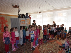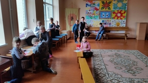 Šiandien "Pelėdžiukų" grupės vaikai baigė "Draugystės traukinio" piešinį. Į savaitės "Be patyčių" baigiamąjį renginį pasikvietėme "Kiškučių" grupės vaikus. Juos pakvietėme kartu pažaisti.