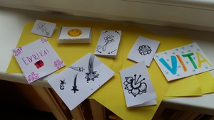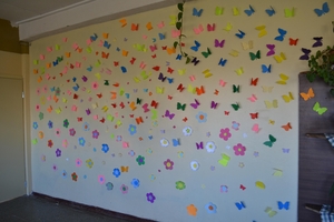 Etikos pamokų metu 5b,6a,bei 8-10 diskutavo apie patyčias,žiūrėjo filmukus.Po to rašė ar piešė jų darbai buvo skirti draugystės temai, Sukabinus visus darbelius -atsirado graži draugystės pieva...pilna ryškių gėlių,drugelių.Gera buvo dirbti Kartu.