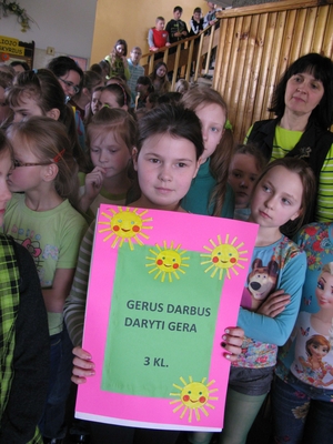 Visą savaitę vaikai savo draugams rengė informacinius plakatus ir kvietė prisijungti prie veiklos nukreiptos prieš patyčias.