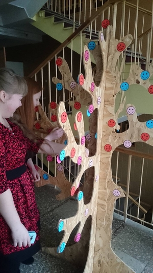 Šiandien mūsų gimnazijoje pražydo "Šypsenėlių medis". Kiekvienas galėjo pasirinkti "veiduką", kuris atspindi šiandienos nuotaiką ir užklijuoti jį ant medžio. Džiugu, kad toks spalvingas ir ryškus mūsų medis. Gyvename po vienu stogu, juk svarbu, kaip jaučiasi kiekvienas iš mūsų. O jei kartais liūdna šiandien, tai net neabejojame, kad toks medis tikrai ...