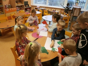Pirmą savaitės BE PATYČIŲ dieną „Bitučių", „Aitvarėlių", „Pelėdžiukų" grupių pedagogai tėvų informaciniuose stenduose iškabino lankstinukus su informacija, kur vaikams kreiptis esant patyčių požymiams, o su vaikais nusprendė pasigaminti linksmas priemones, simbolizuojančias vaikų draugystę.