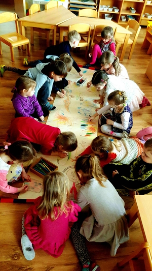 "Varliuko " grupės vaikai visą savaitę piešė ir aptarinėjo piešinius apie patyčias, piešė "Draugystės taką", dainavo daineles apie draugystę.