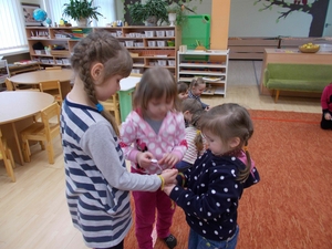Žiniuko“ gr. ugdytiniai pynė ir dovanojo grupės draugams draugystės apyrankes.